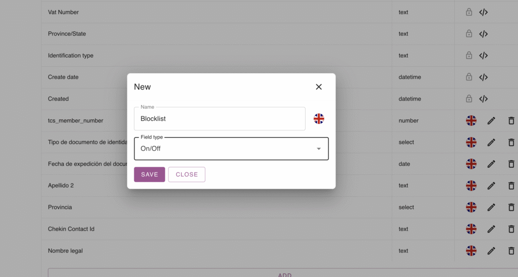 Fill in the Name field (e.g., Blocked Guests), and chose the field type.