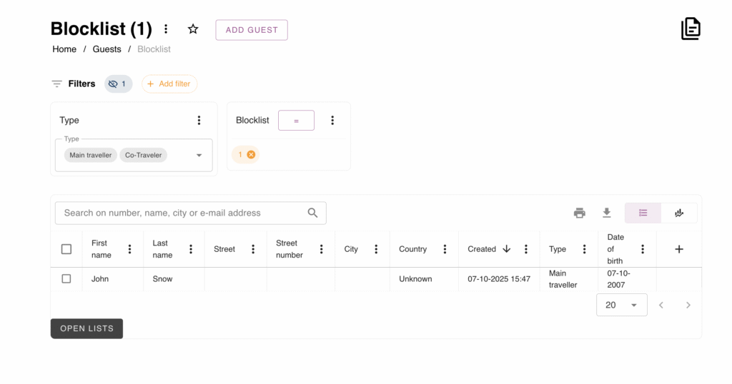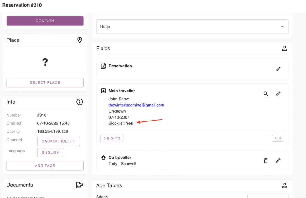 Booking View: On the booking page, this information (Blocked Guests: Yes/No) will be listed along with the traveler’s details.