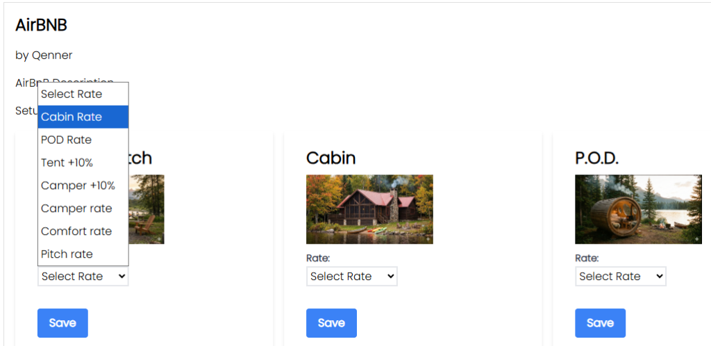 The rates you have set up in Camping.care, can be connected for external channels as well. In the Airbnb app you can select a rate per accommodation: