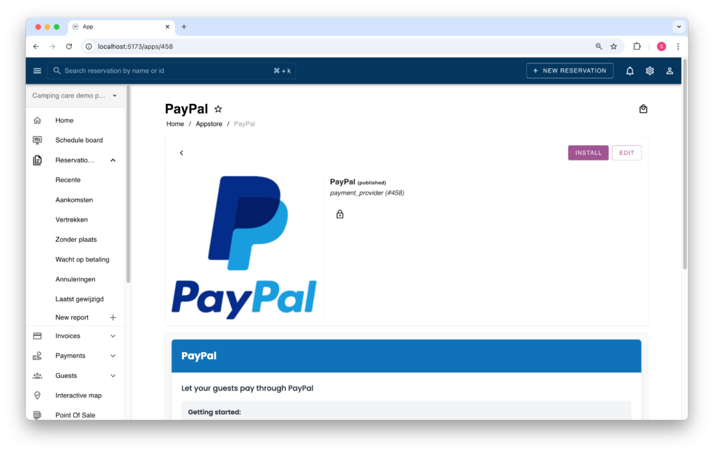 To start using the PayPal app navigate to the app in the Camping Care App Store.
