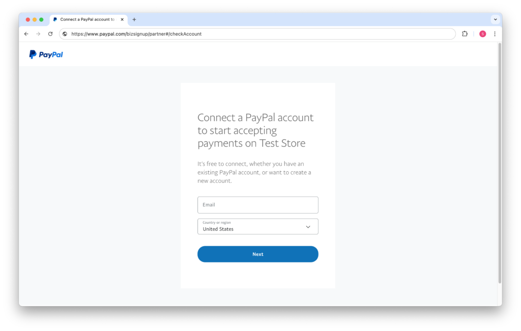 Click on the ‘Connect’ button to onboard your PayPal account in Camping Care. This will take you to the PayPal sign up website. Please complete all steps required.
